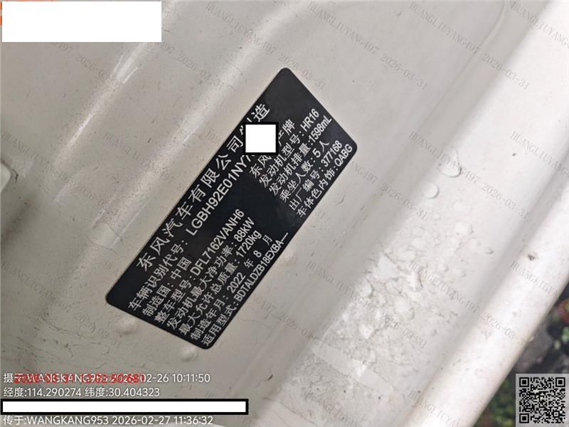 车牌号 鄂****** 品牌 日产
