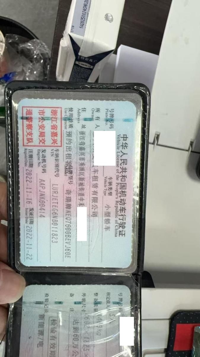 初次登记日期 2022-11-16 车辆名称 奇瑞新能源 艾瑞泽