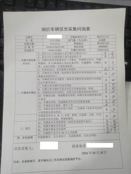 车架号是否受损 未知 使用性质 非营运