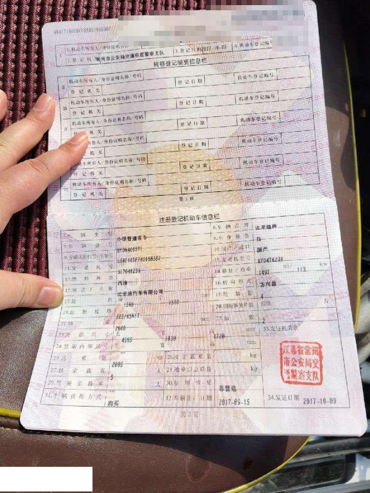 初次登记日期 2017-10-09 车辆名称 比亚迪 宋