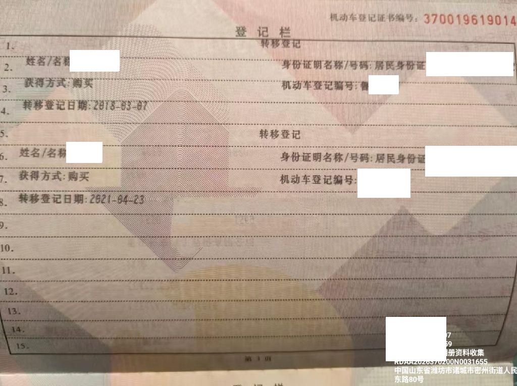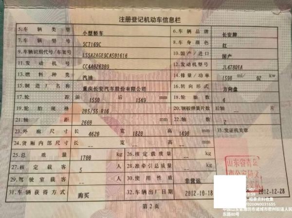 车辆归属地 山东省青岛市 车辆停放仓库 山东省诸城市
