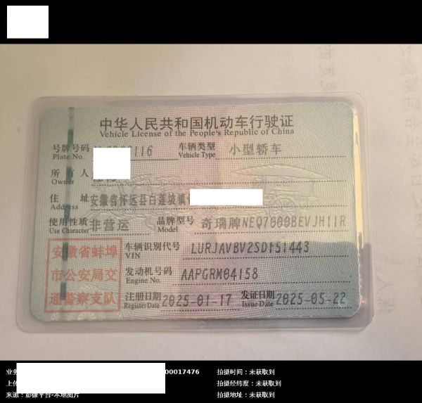 车牌号 皖****** 品牌 奇瑞