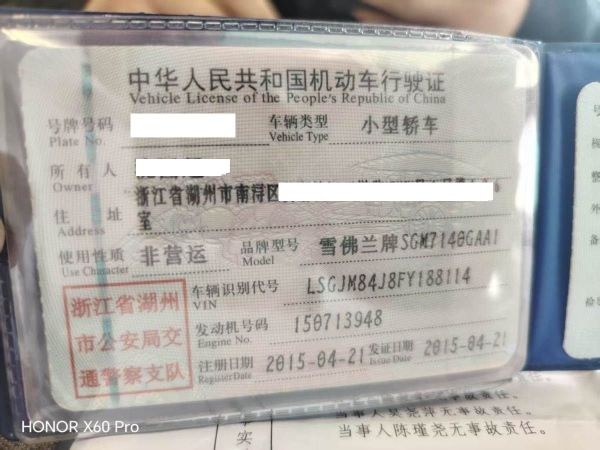 车辆归属地 浙江省湖州市 车辆停放仓库 浙江省湖州市湖州市