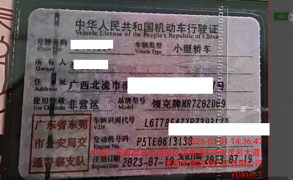 车辆归属地 广东省东莞市 车辆停放仓库 广东省茂名市茂名市