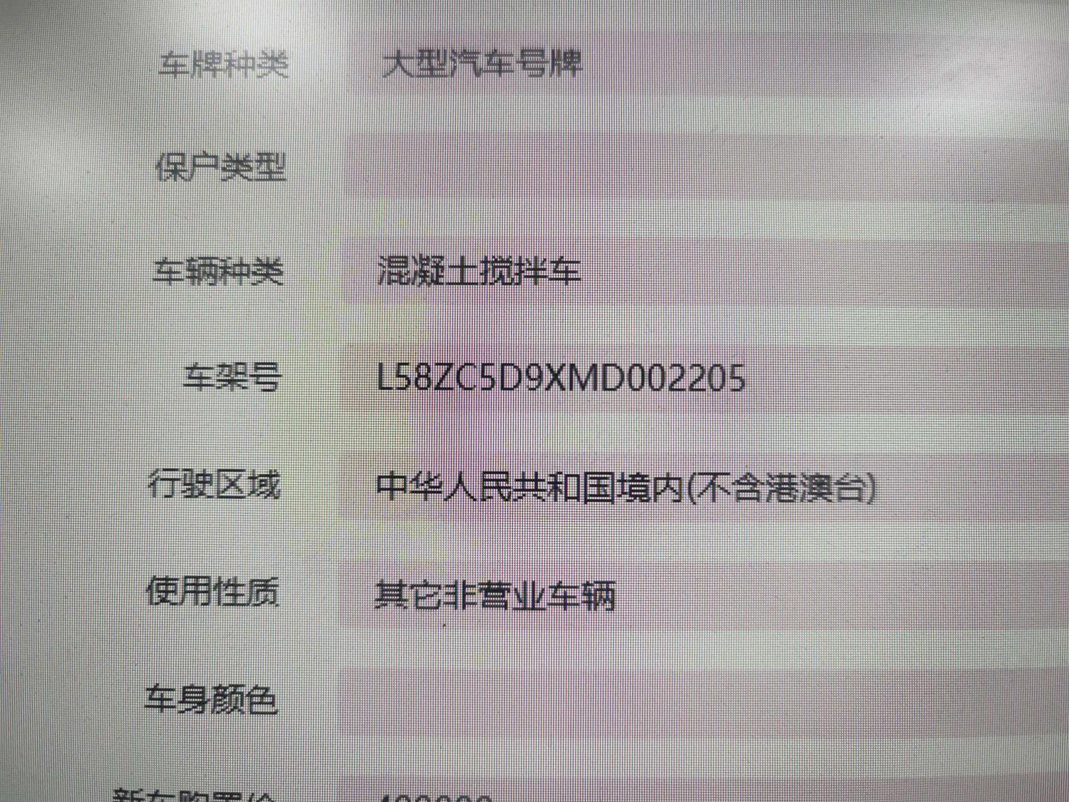 初次登记日期 2021-06-28 车辆名称 中集 中集混凝土搅拌车