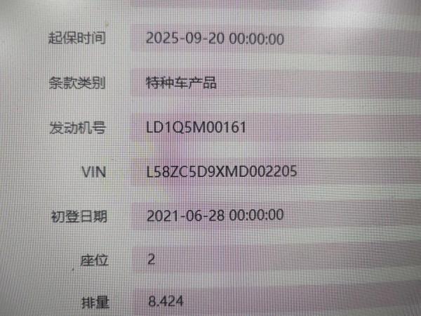 底盘号码 L58ZC5D9XMD002205 变速箱类型 手动
