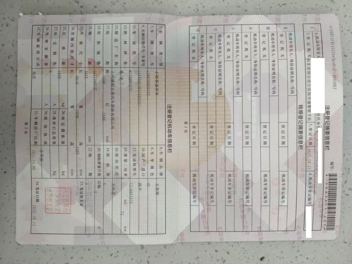 初次登记日期 2025-10-23 车辆名称 五菱汽车