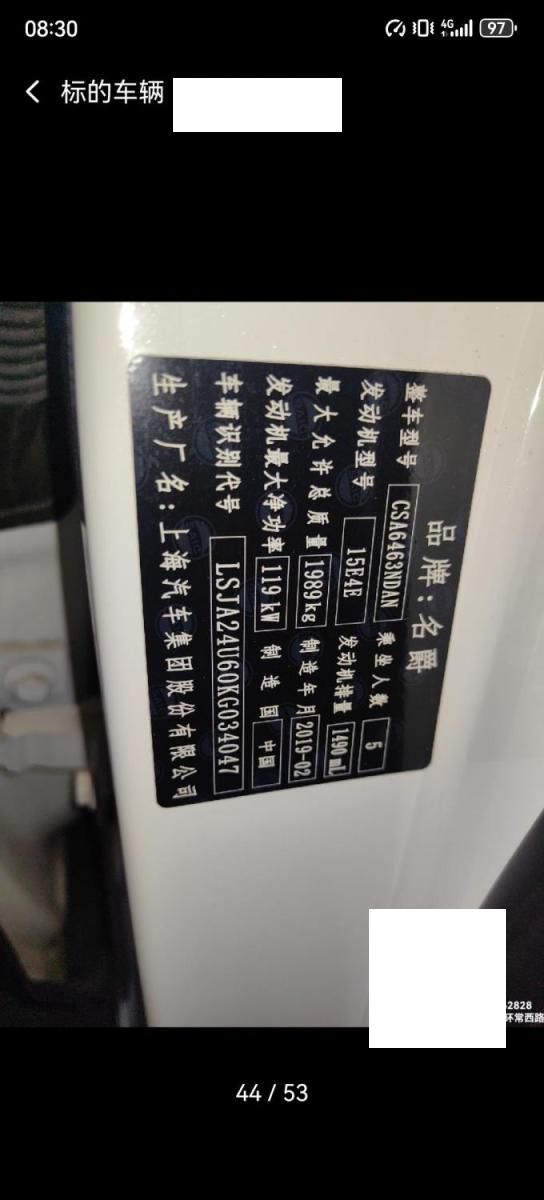 初次登记日期 2019-08-07 车辆名称 名爵牌