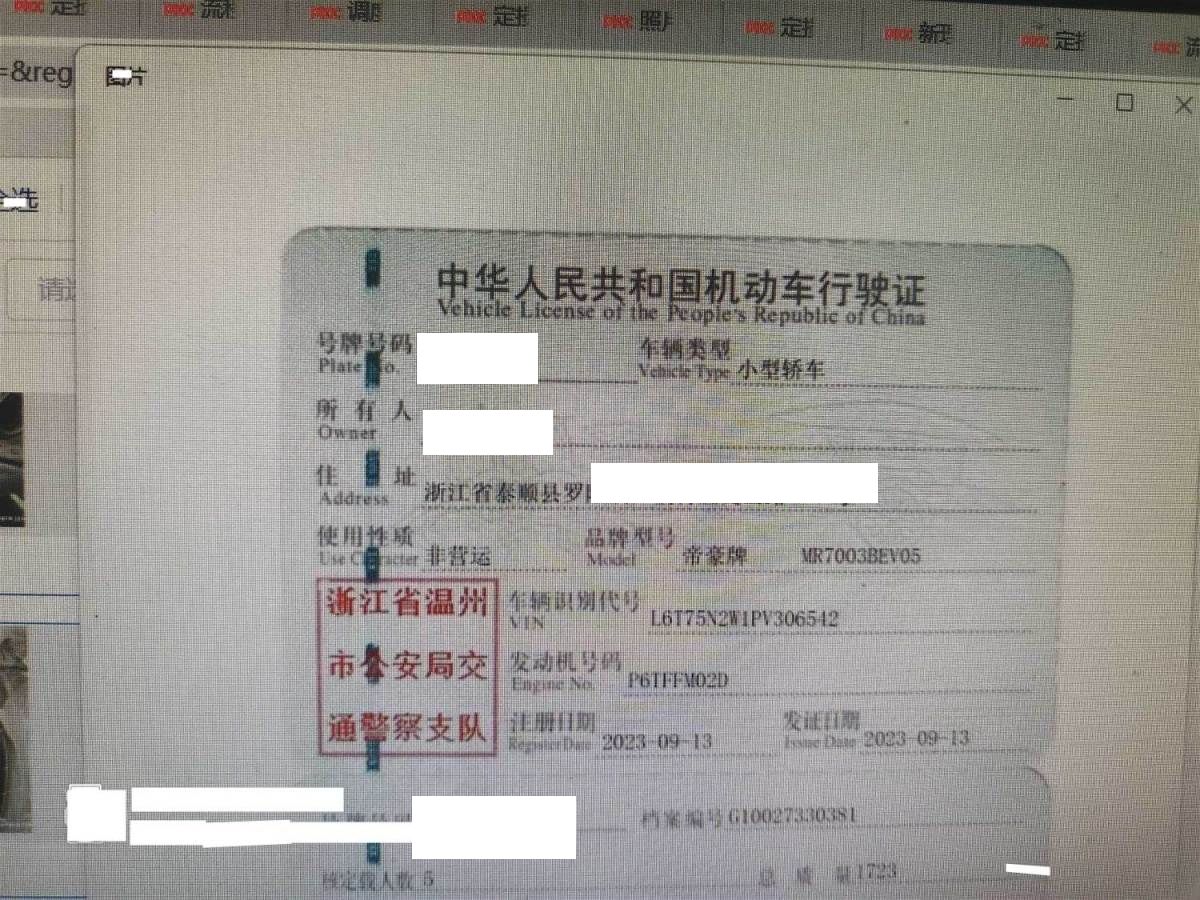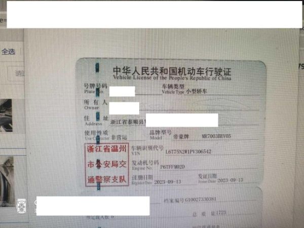 车牌号 浙****** 品牌 吉利