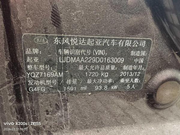 初次登记日期 2014-01-29 车辆名称 起亚牌