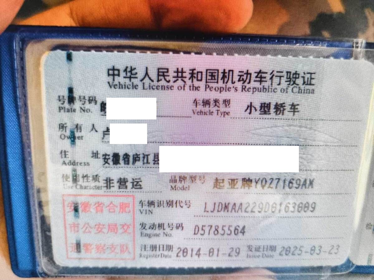 车牌号 皖****** 品牌 起亚
