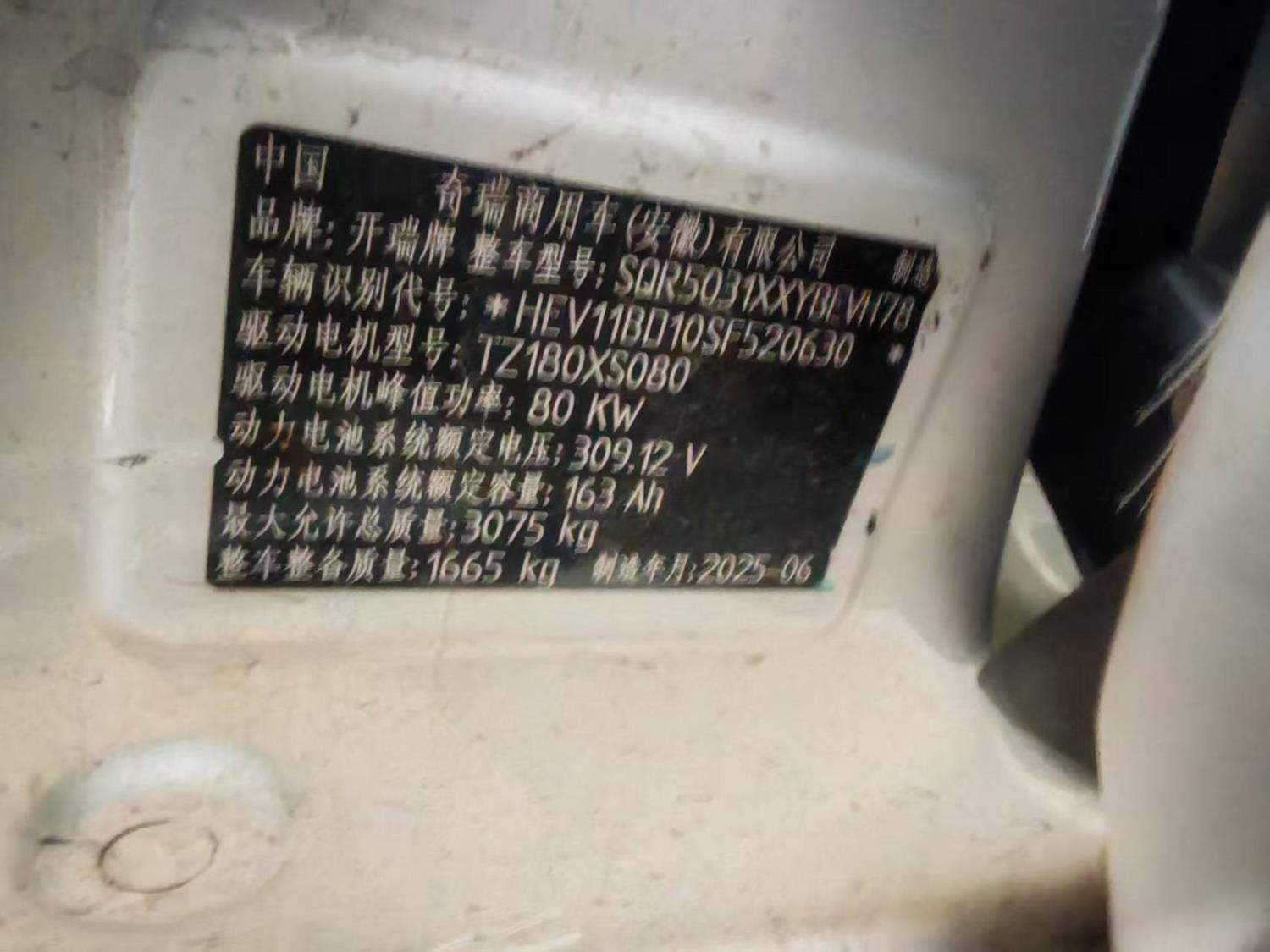 初次登记日期 2025-08-08 车辆名称 开瑞 江豚