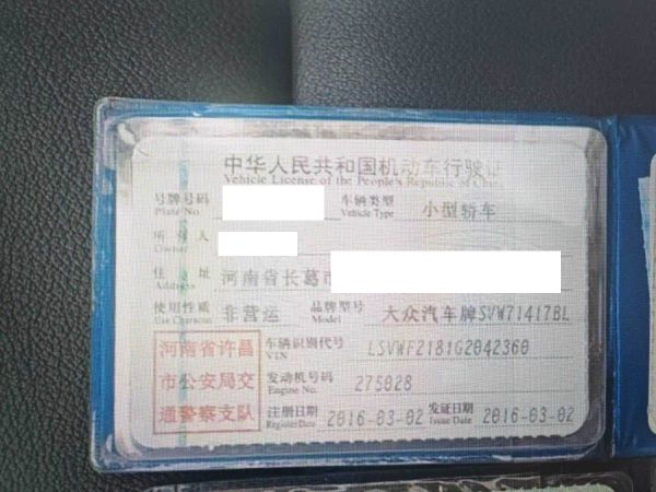 车牌号 豫****** 品牌 大众