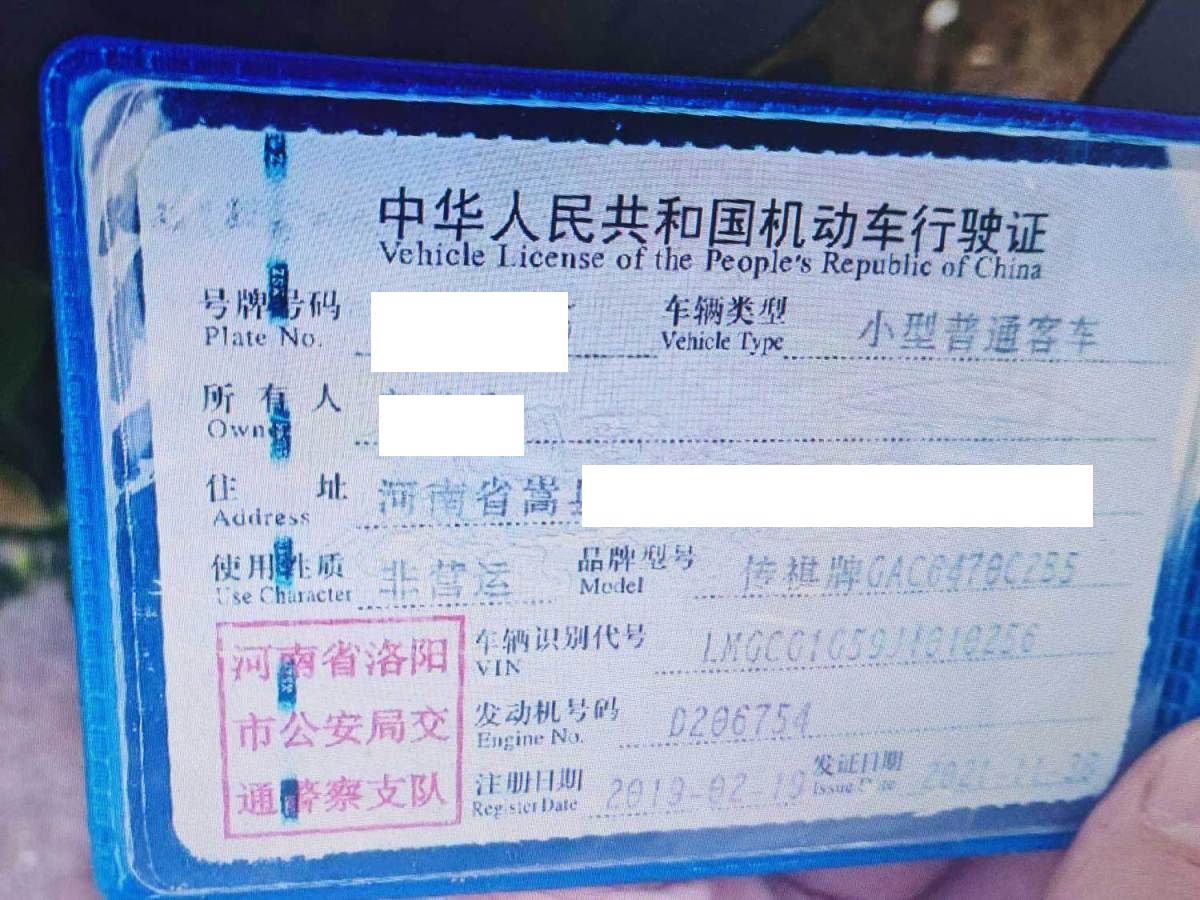 初次登记日期 2019-02-19 车辆名称 广汽传祺