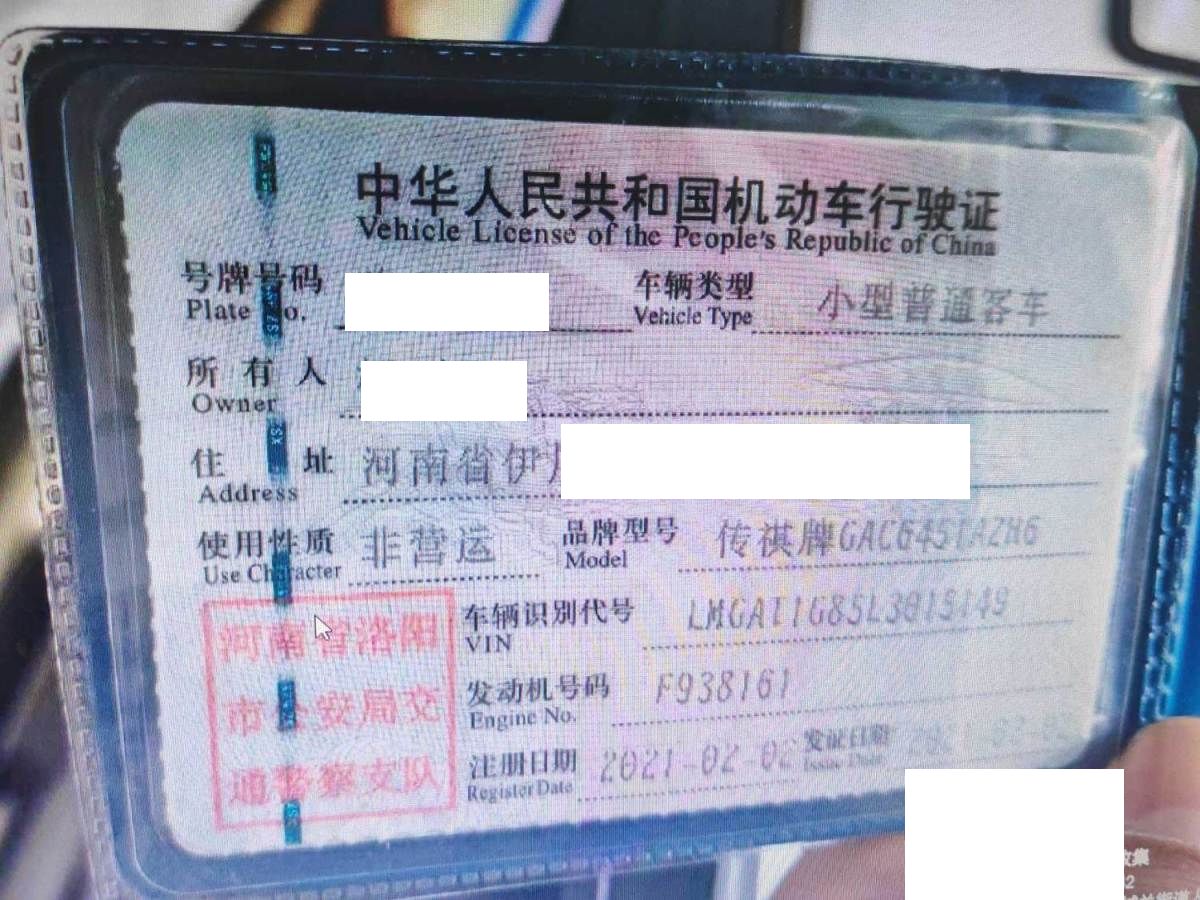 初次登记日期 2021-02-02 车辆名称 广汽传祺