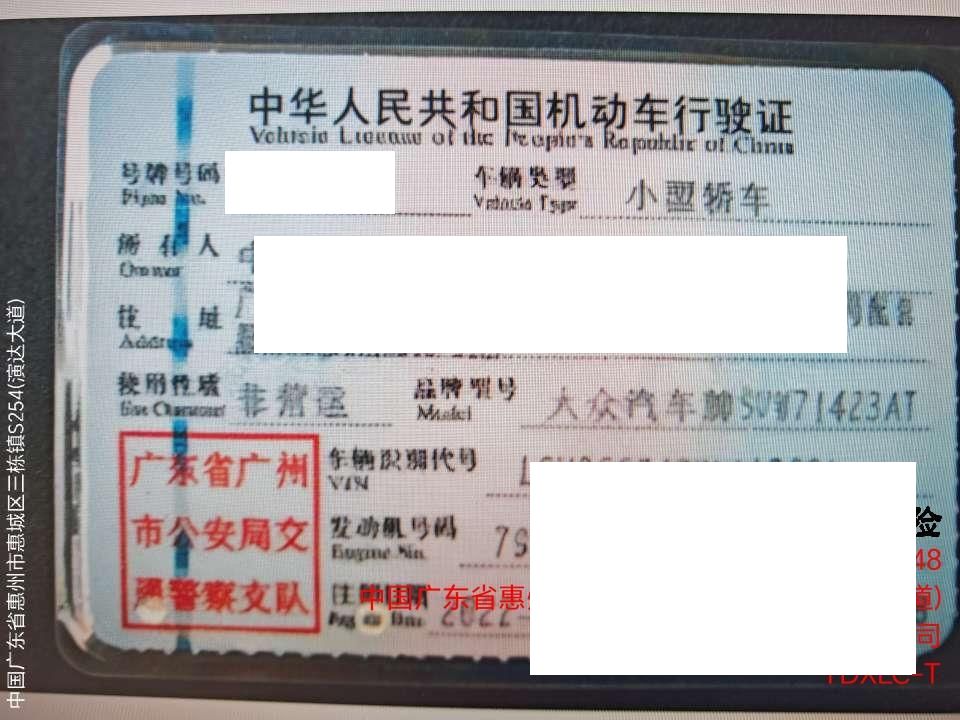 车辆归属地 广东省广州市 车辆停放仓库 广东省惠州市惠州市