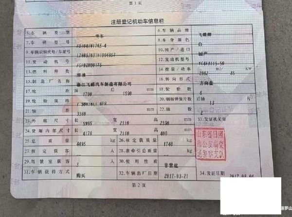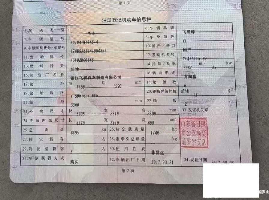 初次登记日期 2017-08-04 车辆名称 飞碟汽车