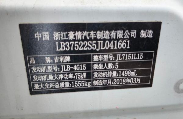 初次登记日期 2018-04-25 车辆名称 吉利汽车