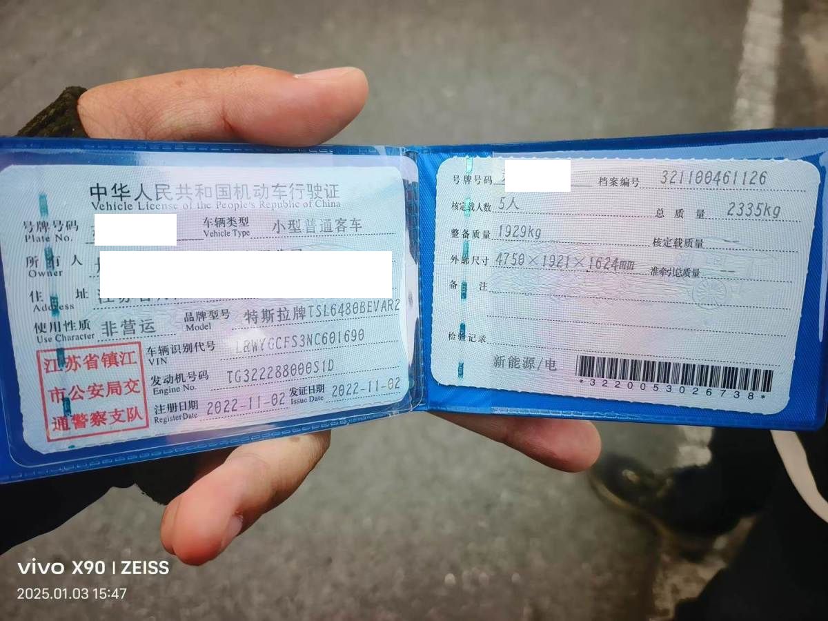 初次登记日期 2022-11-02 车辆名称 特斯拉 Model