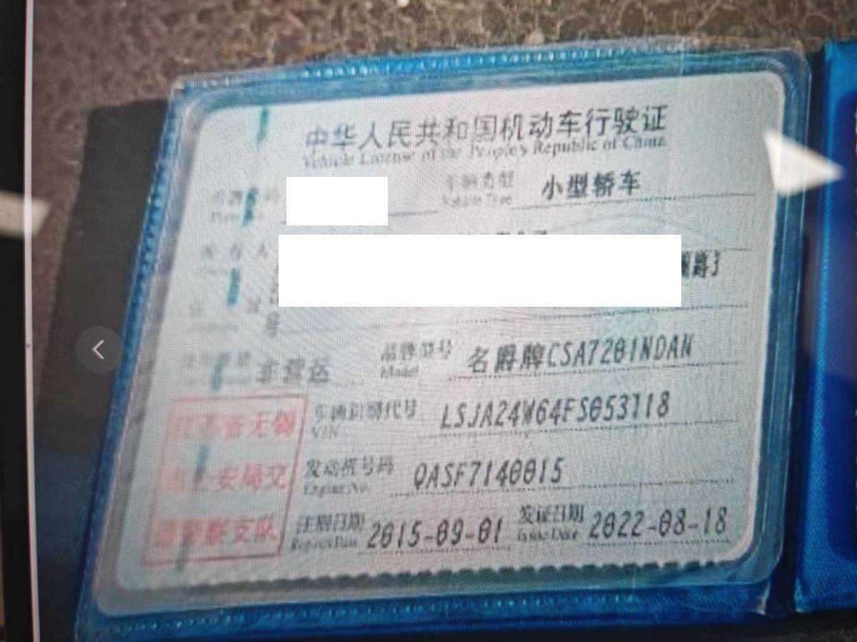 初次登记日期 2015-09-01 车辆名称 名爵 锐腾
