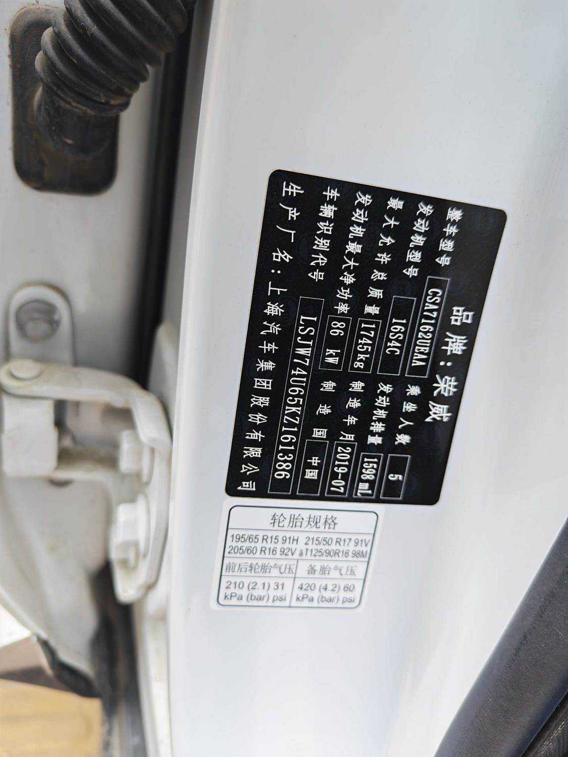 车牌号 冀****** 品牌 荣威