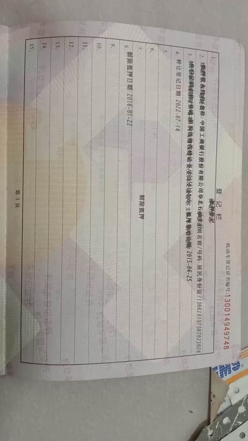 车架号是否受损 未知 使用性质 非营运