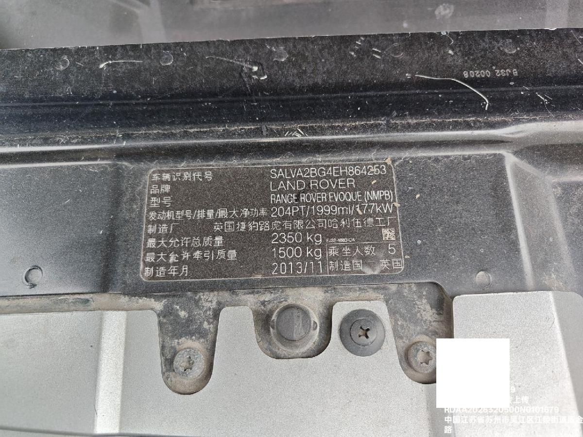 初次登记日期 2014-02-14 车辆名称 路虎 揽胜极光(进口)