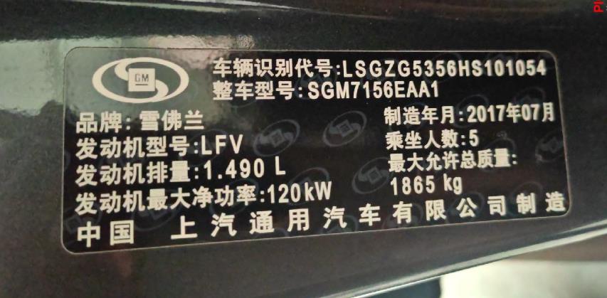 初次登记日期 2017-09-06 车辆名称 雪佛兰 迈锐宝XL