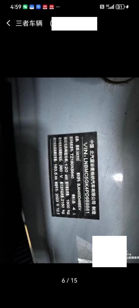 底盘号码 LNBMC5GK4PD989861 变速箱类型 自动