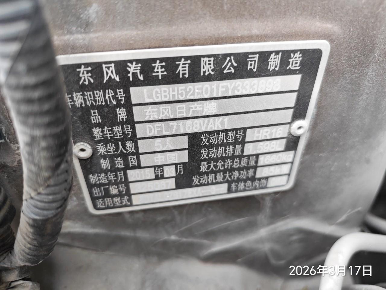 初次登记日期 2015-05-20 车辆名称 日产 轩逸