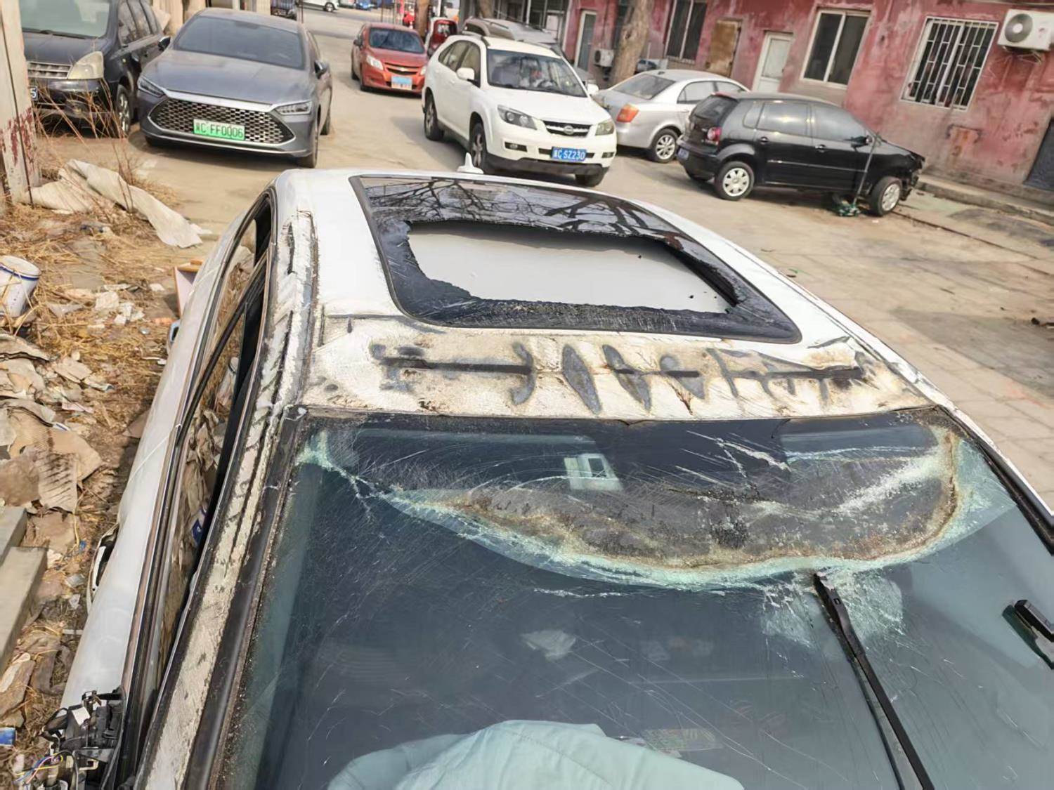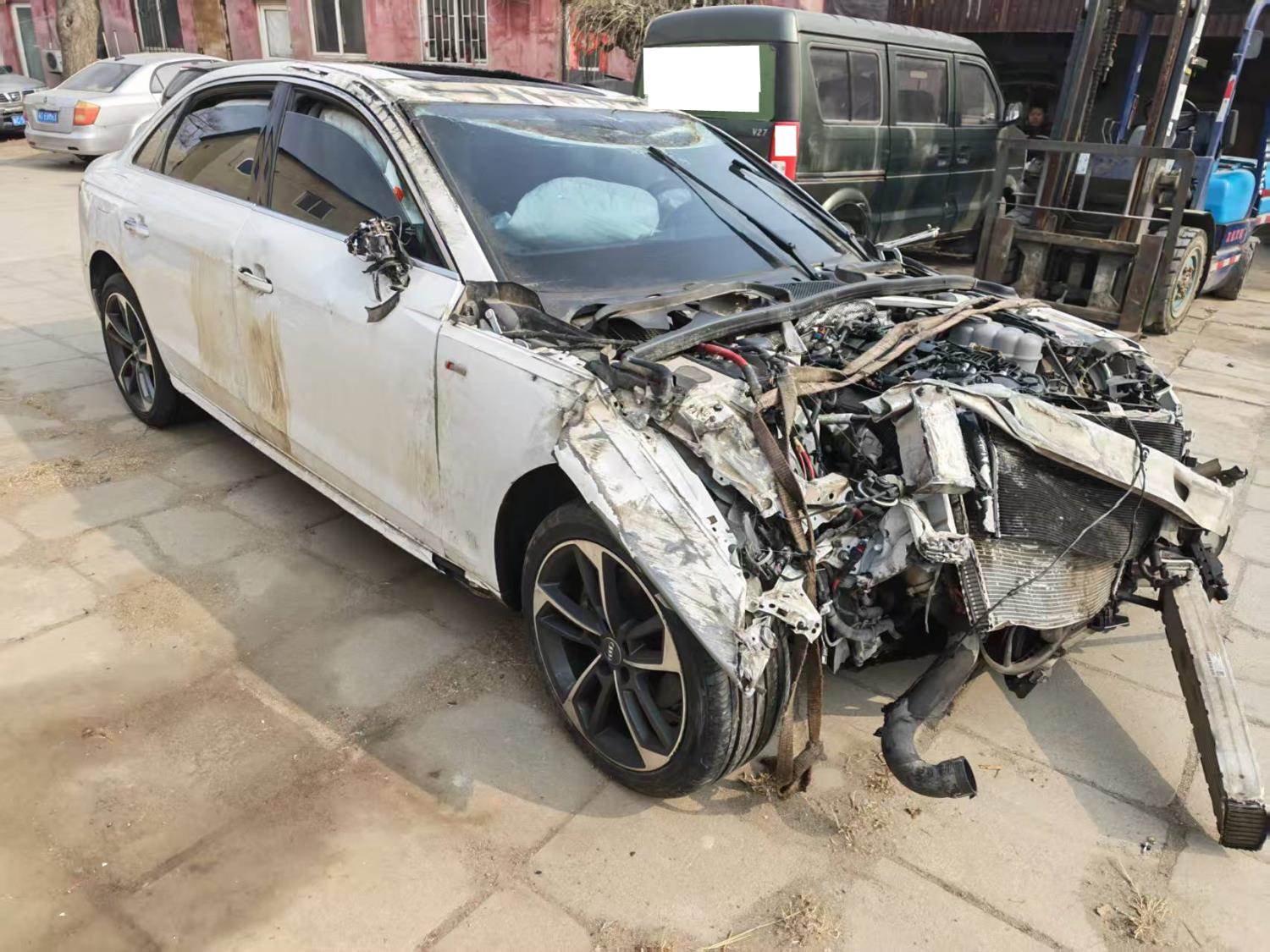 寻残,没拆解无拆解费 高速上下来就这样了,配件如图所示。前杠撞丢了