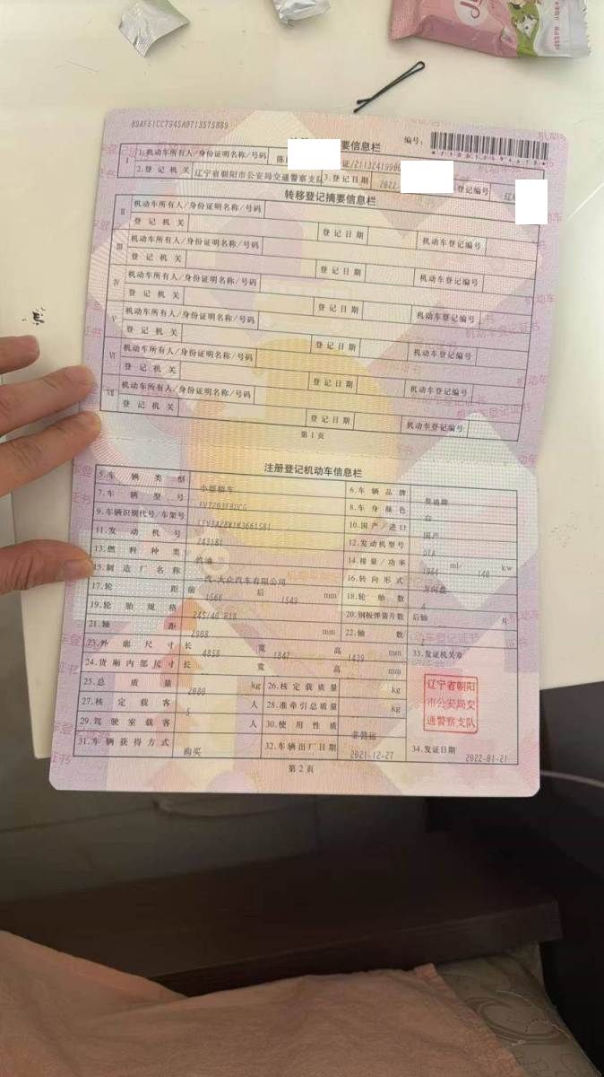 初次登记日期 2022-01-21 车辆名称 奥迪A4L