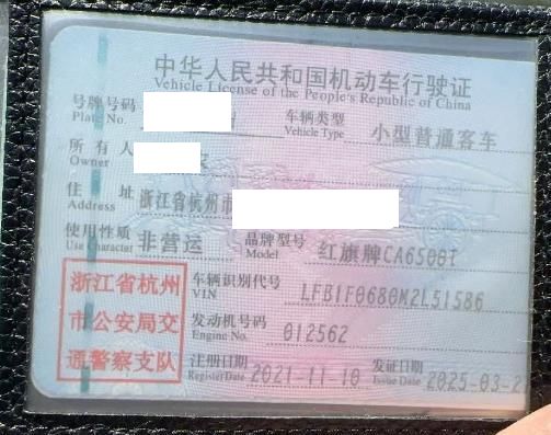 车牌号 浙****** 品牌 红旗