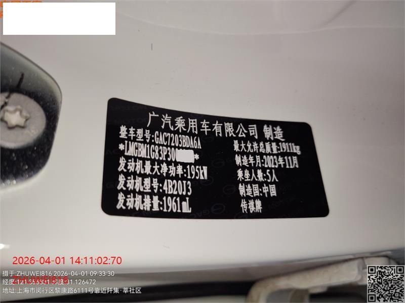 车牌号 沪****** 品牌 传祺