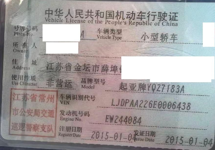 车辆归属地 江苏省常州市 车辆停放仓库 江苏省金坛市金坛市