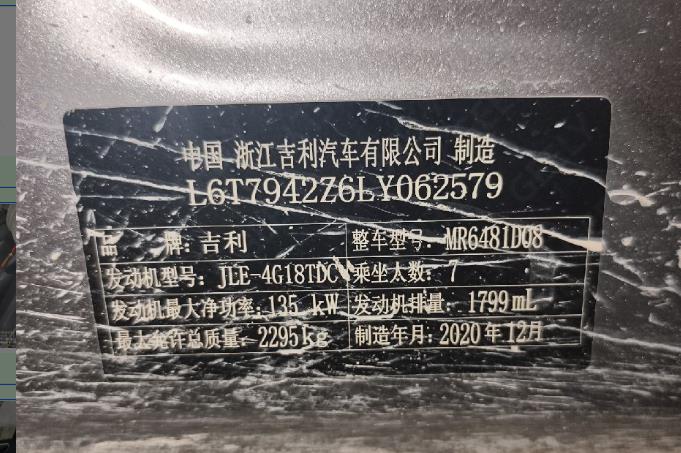 初次登记日期 2021-01-26 车辆名称 吉利汽车 豪越