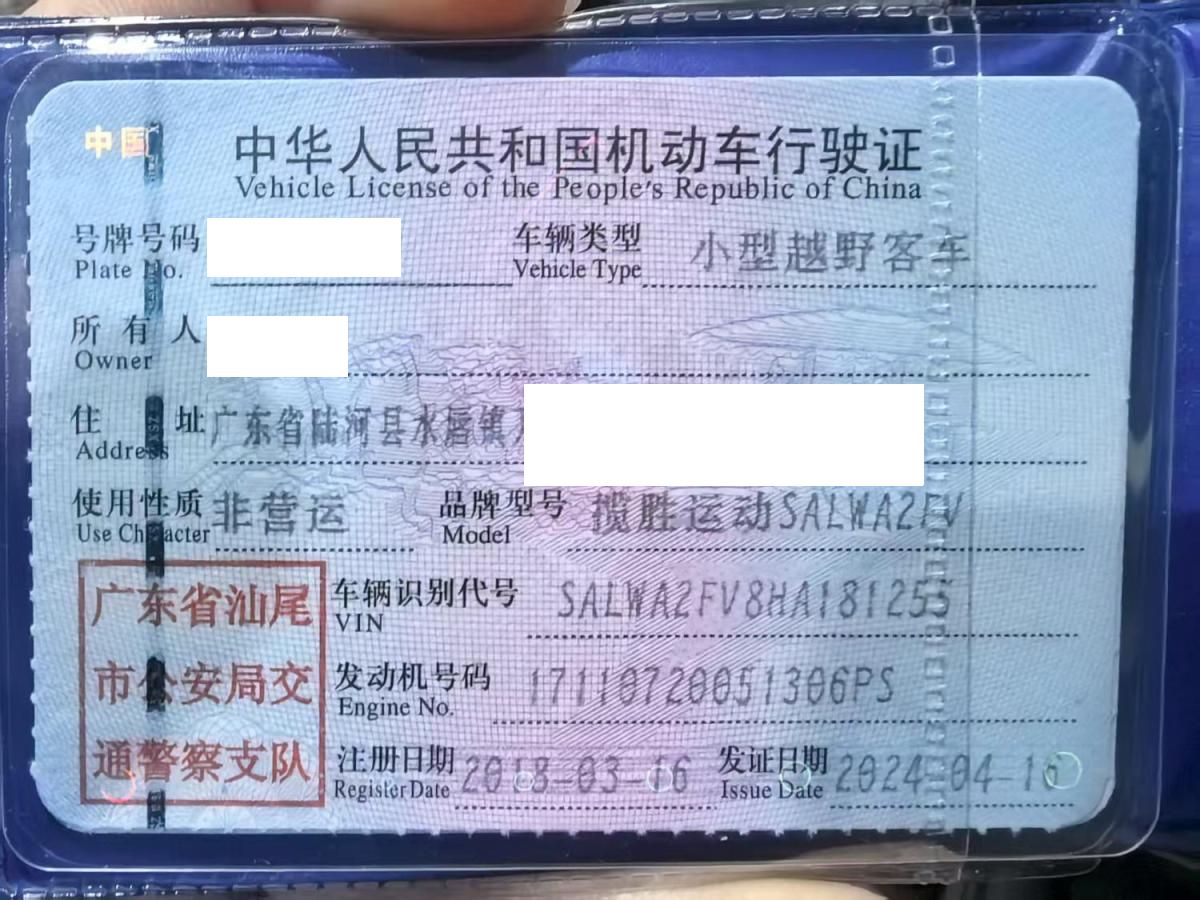 初次登记日期 2018-03-16 车辆名称 路虎 揽胜运动