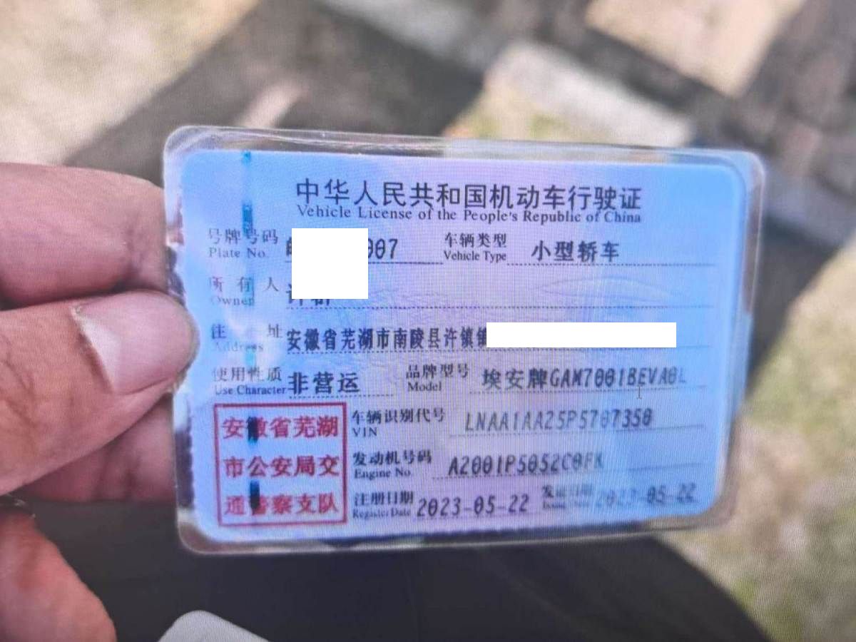 初次登记日期 2023-05-22 车辆名称 埃安 AION S