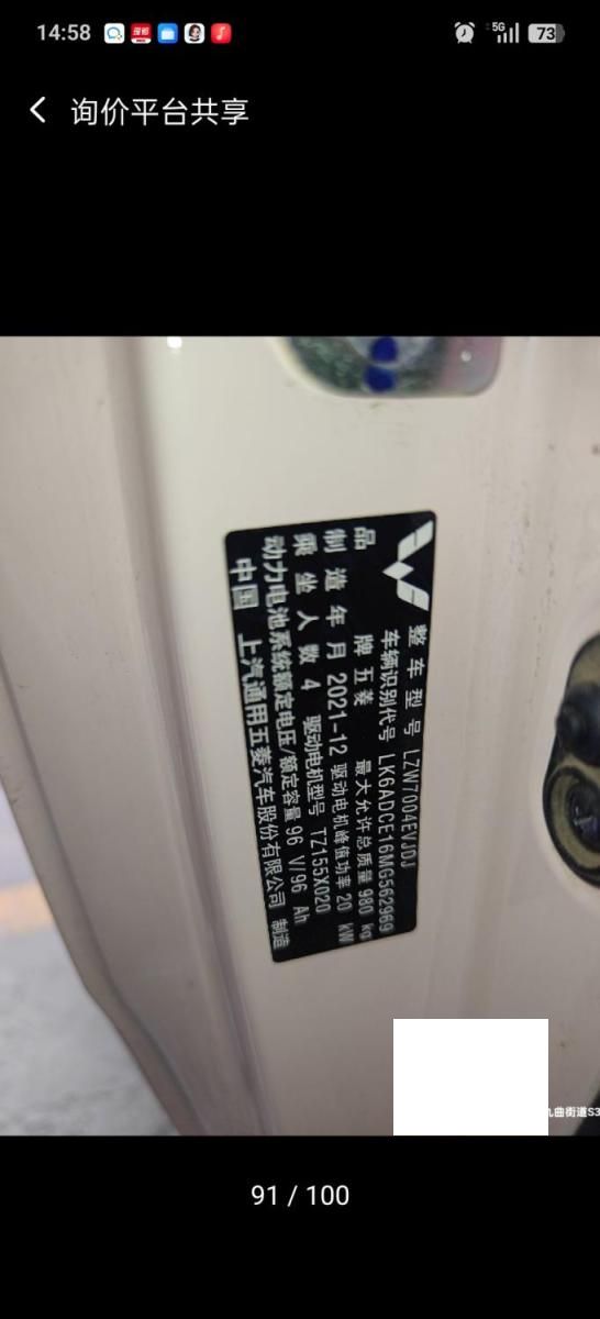 车牌号 鲁****** 品牌 五菱