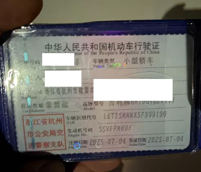 初次登记日期 2025-07-04 车辆名称 吉利银河 星愿
