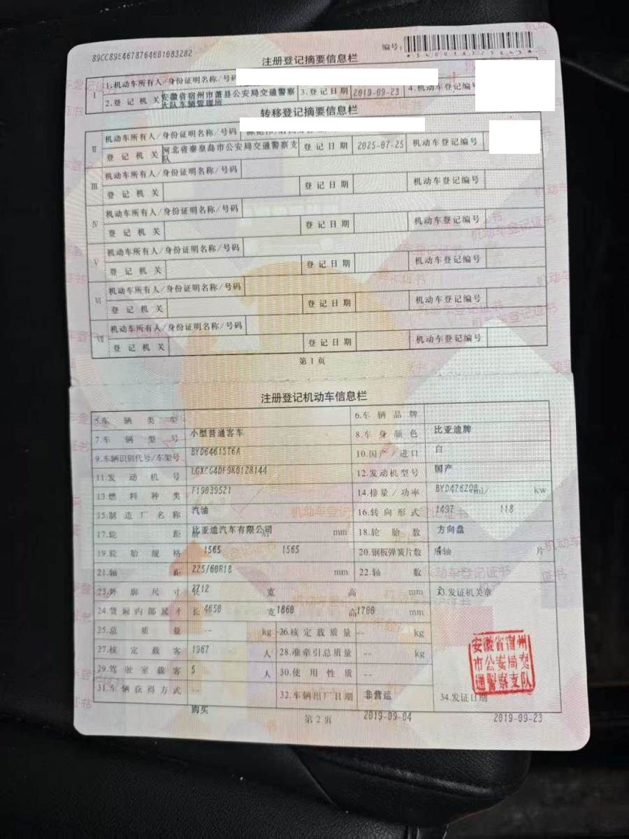 车牌号 冀****** 品牌 比亚迪