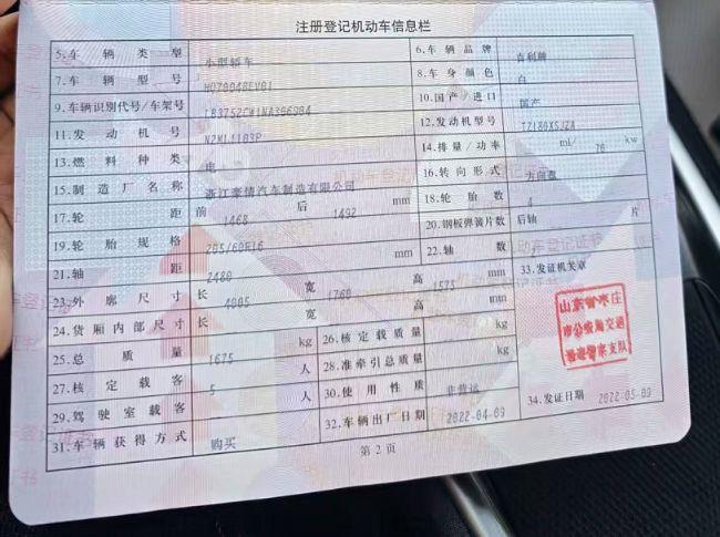 车牌号 鲁****** 品牌 吉利