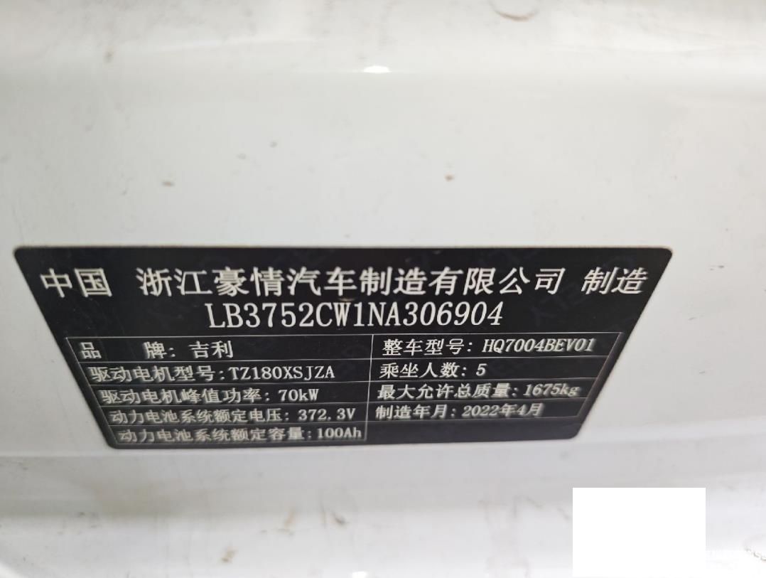 初次登记日期 2022-05-09 车辆名称 吉利几何