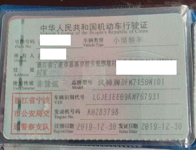 初次登记日期 2019-12-30 车辆名称 东风风神 奕炫