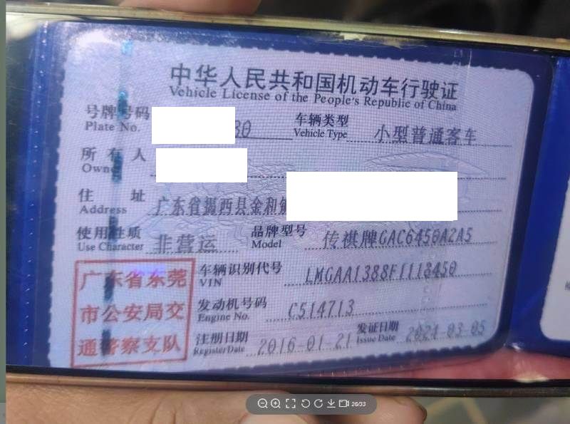 车牌号 粤****** 品牌 传祺
