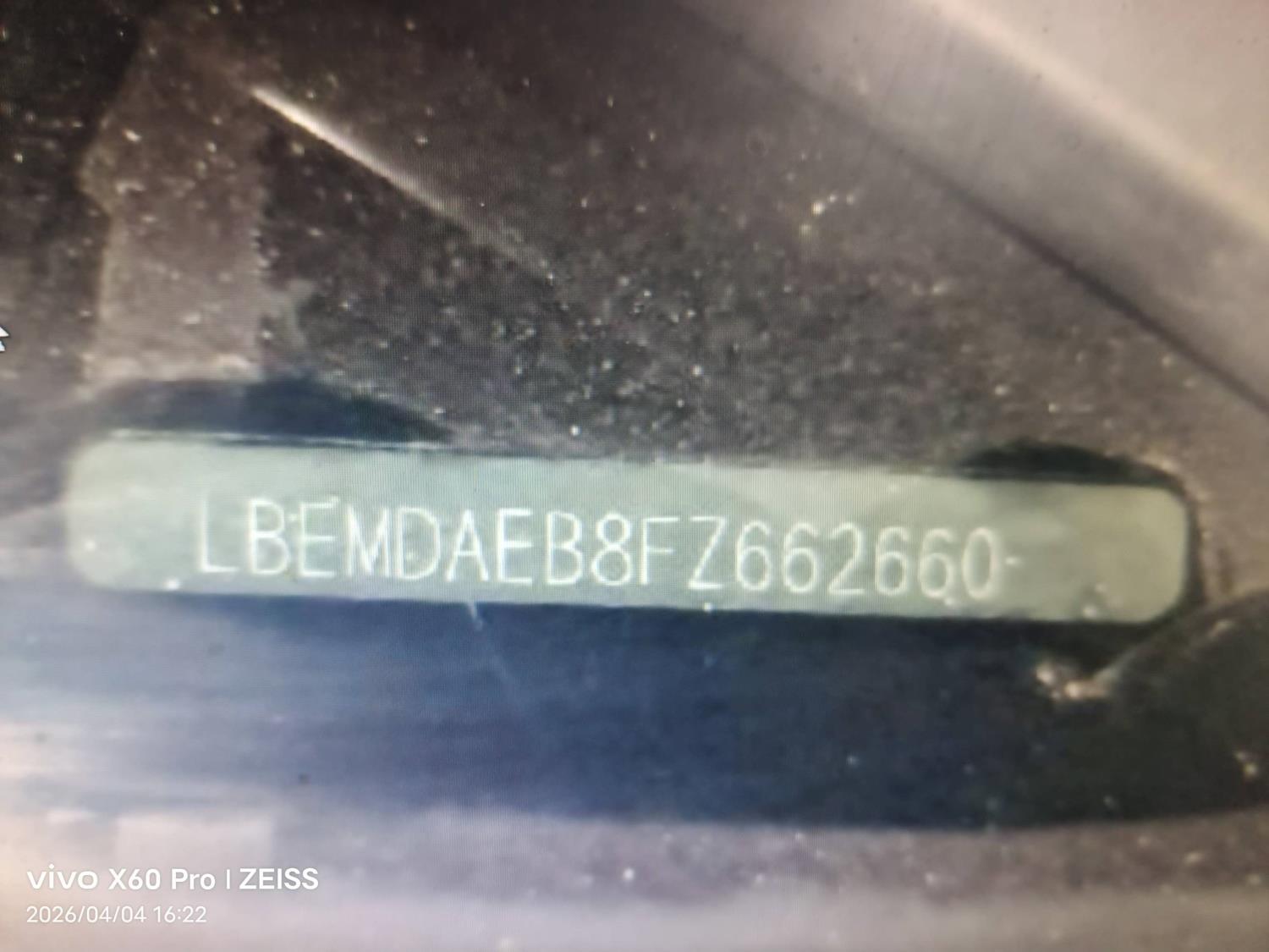 底盘号码 LBEMDAEB8FZ662660 变速箱类型 手动