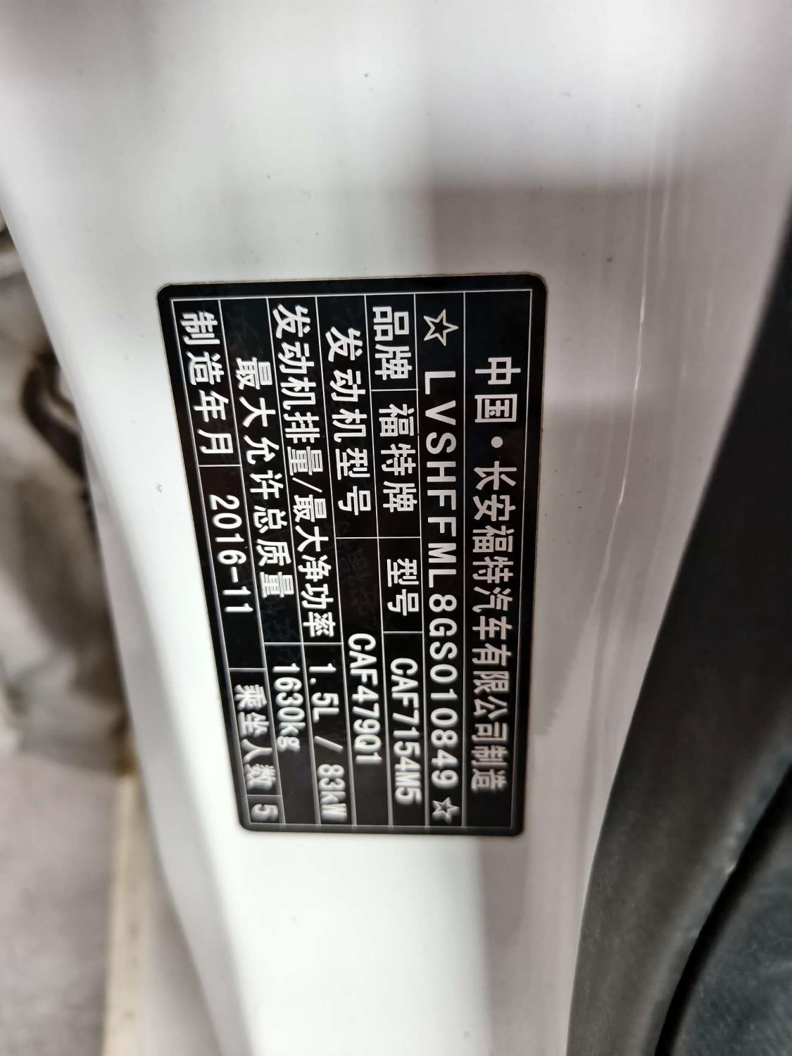初次登记日期 2017-01-13 车辆名称 福特 福睿斯