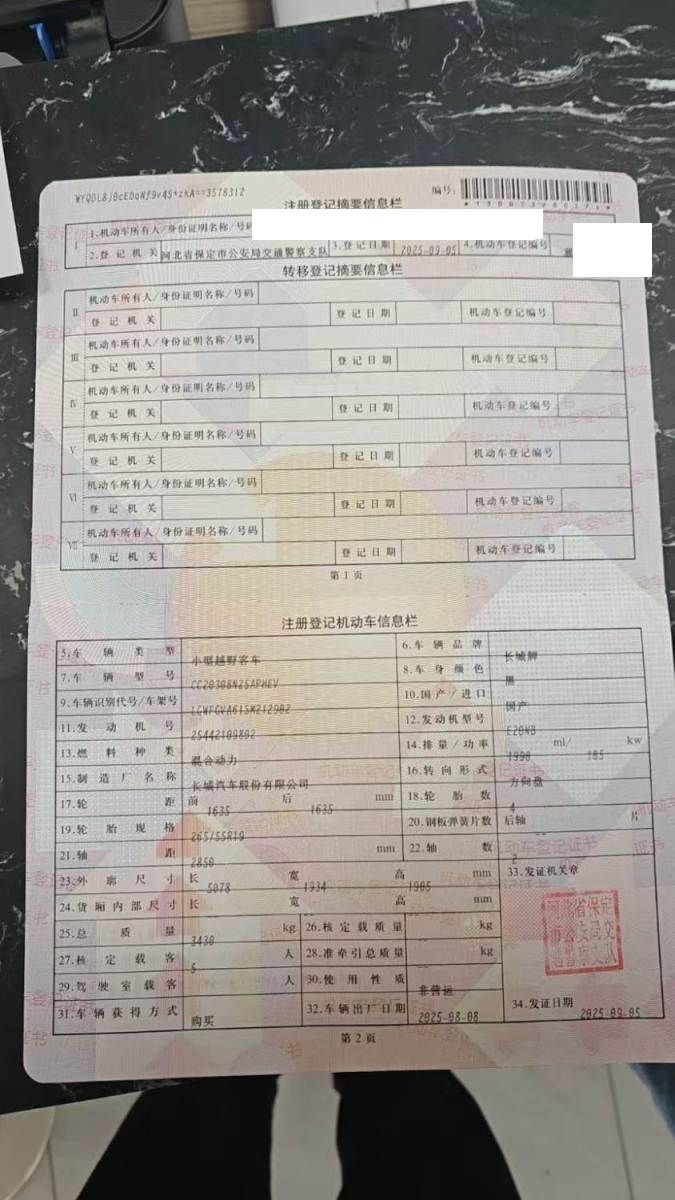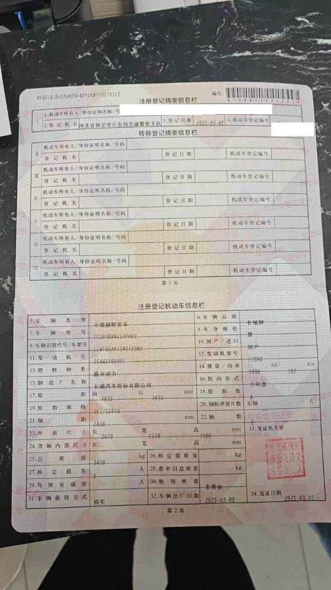 初次登记日期 2025-09-05 车辆名称 坦克牌