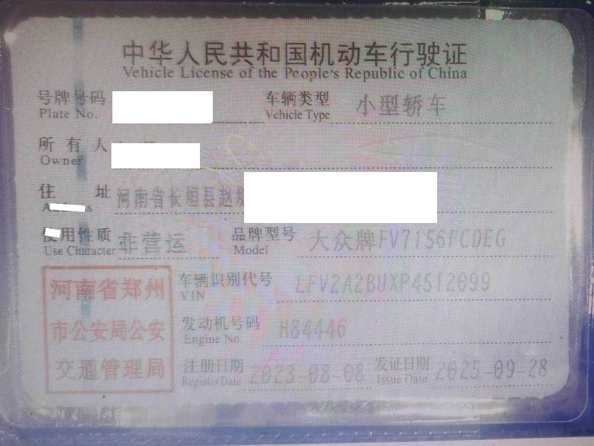初次登记日期 2023-08-08 车辆名称 大众 速腾