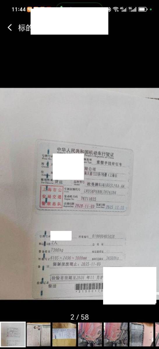 初次登记日期 2020-11-09 车辆名称 福田 欧曼神舟
